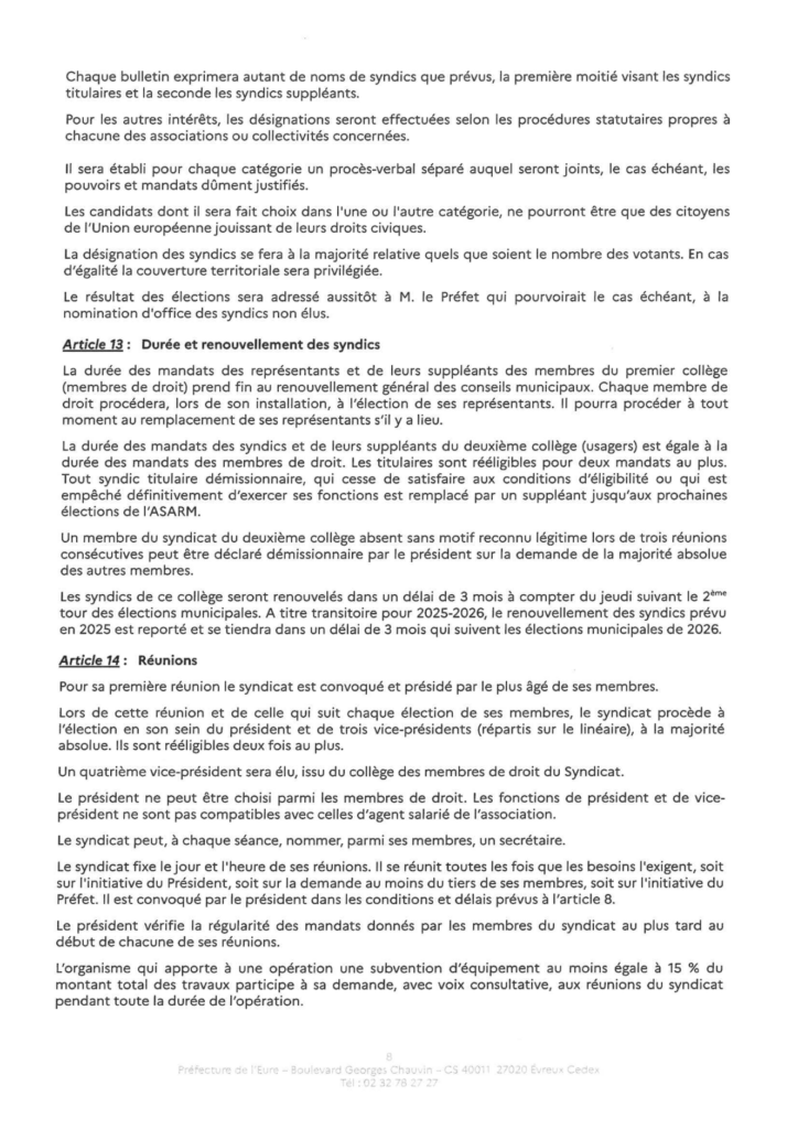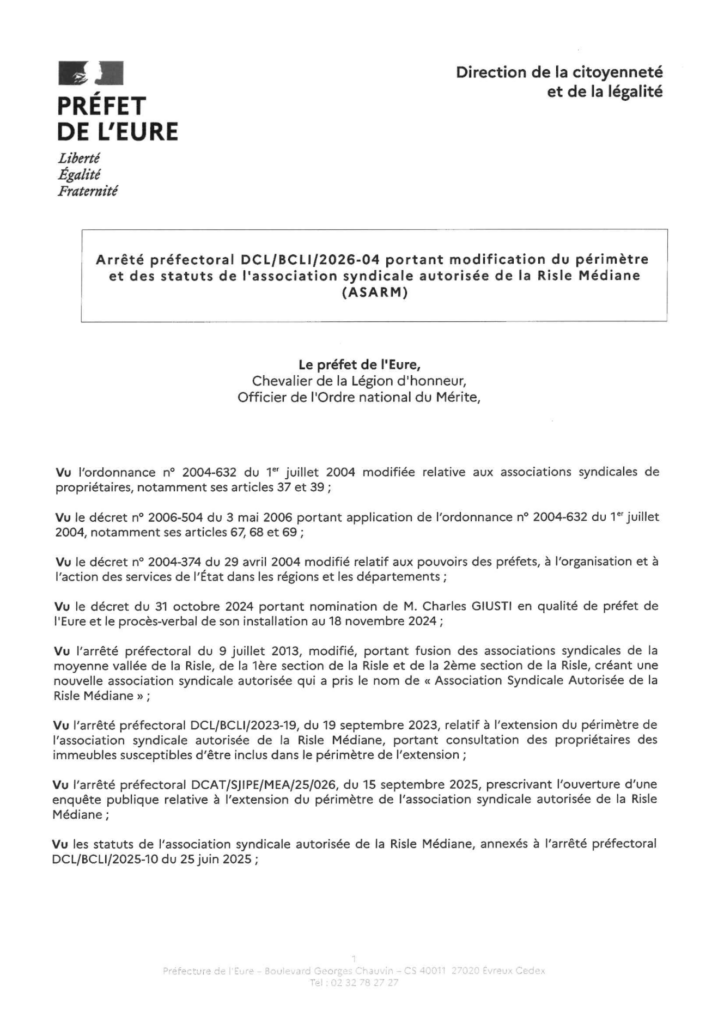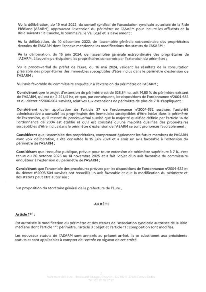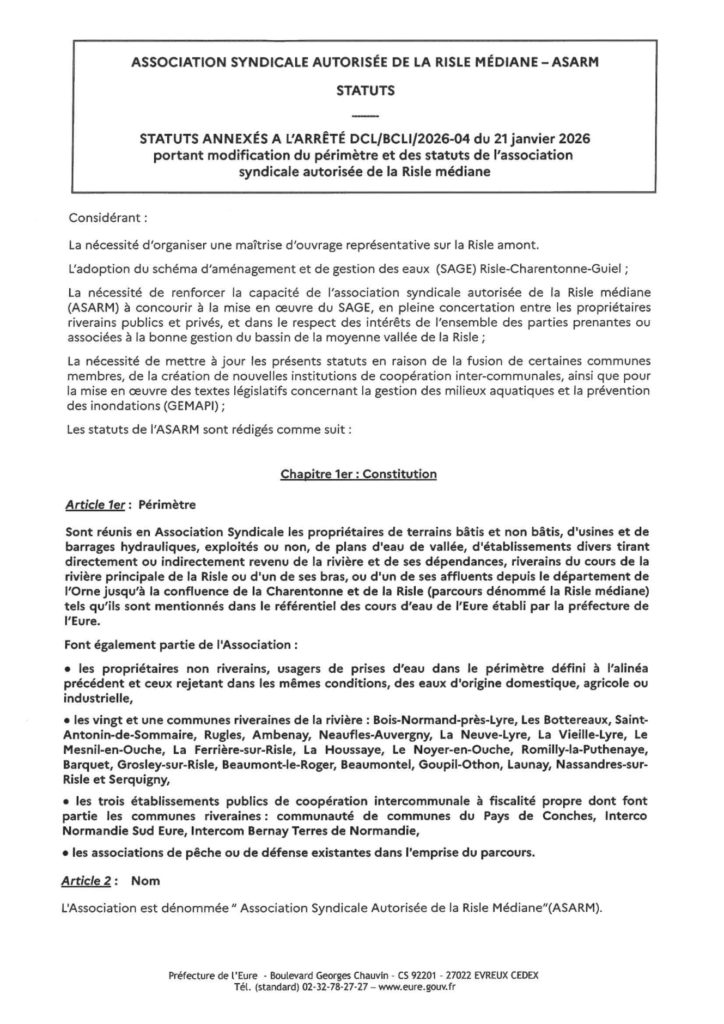 Arrêté portant modification du périmètre et des statuts de l’ASARM