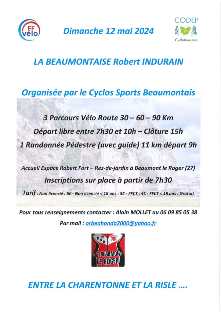 La Beaumontaise Robert Indurain dimanche 12 mai : 3 parcours vélo route