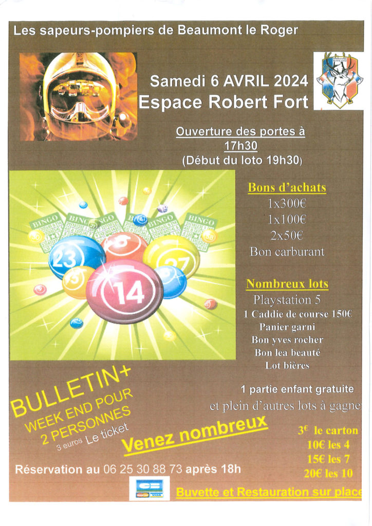 Loto des pompiers samedi 6 avril à l'Espace Robert Fort