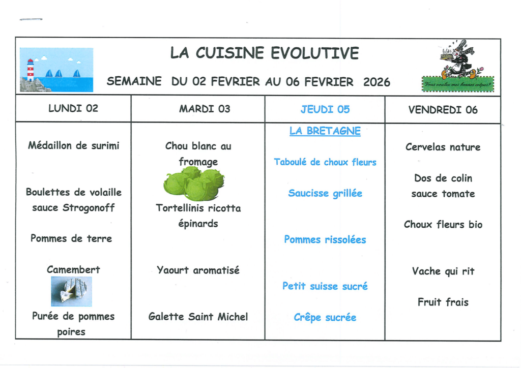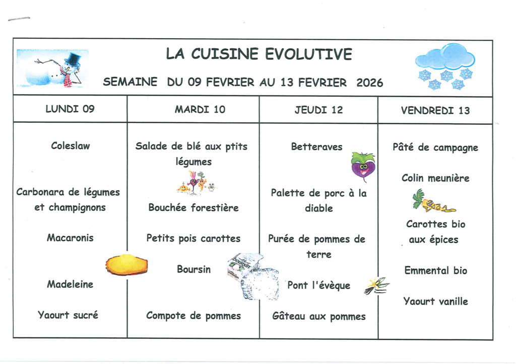 Menus du mois de JANVIER et FÉVRIER 2026 :