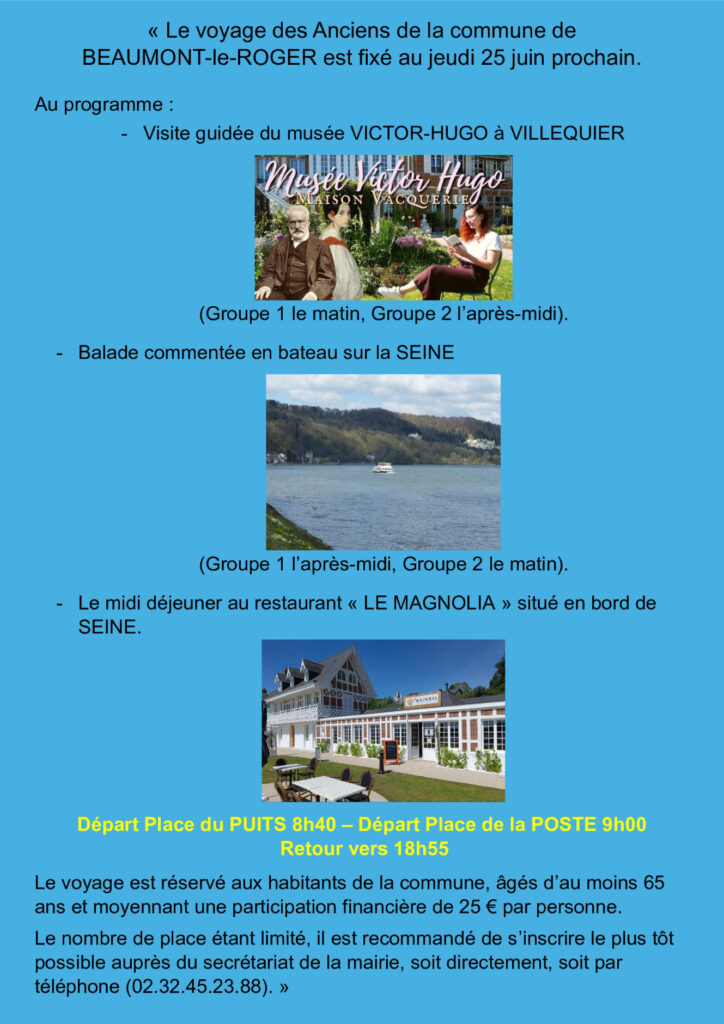 Ouverture des inscriptions pour le voyage des Anciens qui aura lieu le jeudi 25 juin