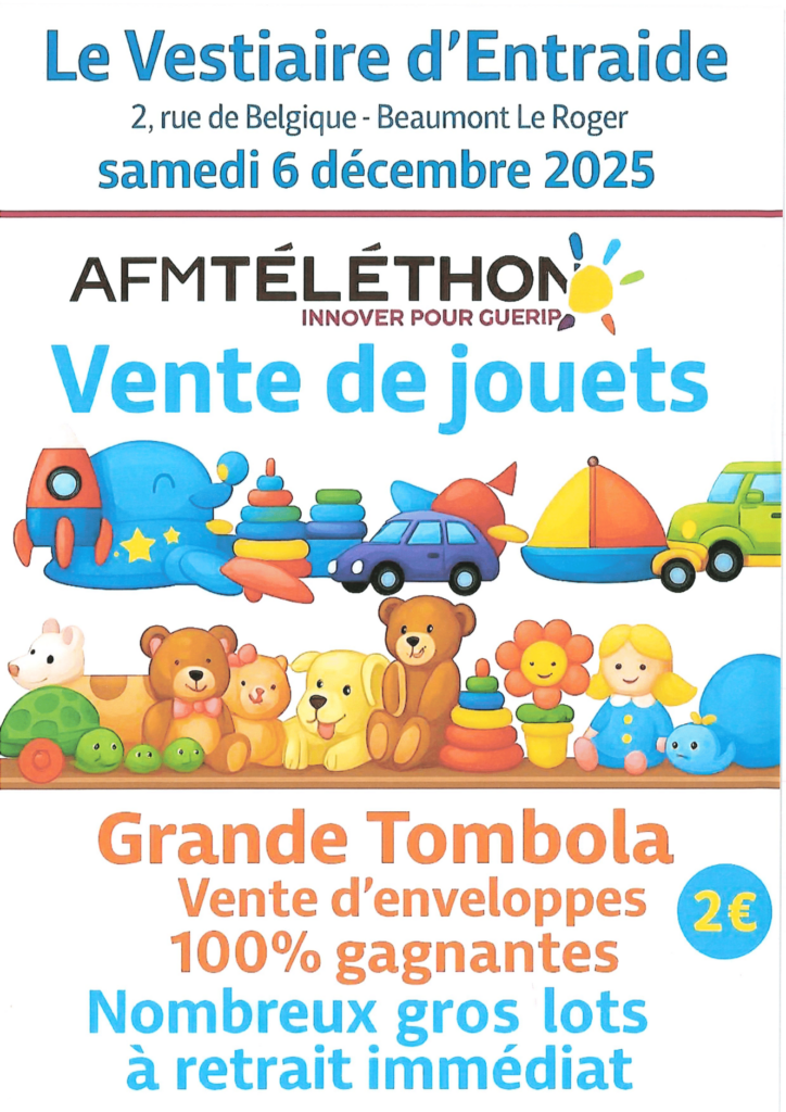 Vous êtes ici : Accueil » Je Vis » Actualités » Vente de jouets et tombola en faveur du Téléthon avec le Vestiaire d’Entraide